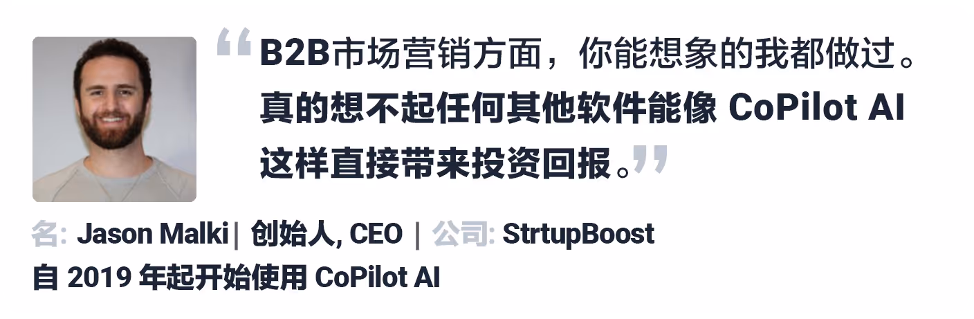 CoPilot AI为一款由人工智能驱动的销售工具,透过帮您的客户大规模并精准地开发、转换高质量LinkedIn潜在客户,推动国内B2B销售团队出海,踏入北美市场。