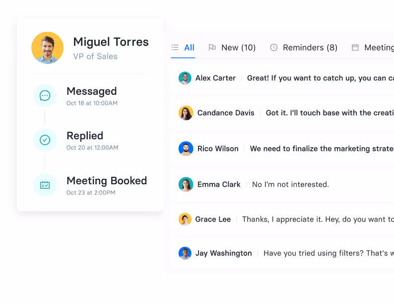 With one click, CoPilot AI's Smart Reply AI crafts personalized messages that align with your conversation’s tone and context. Paired with Personalized Insights AI, it even adapts to your prospect's preferred communication style for seamless engagement.