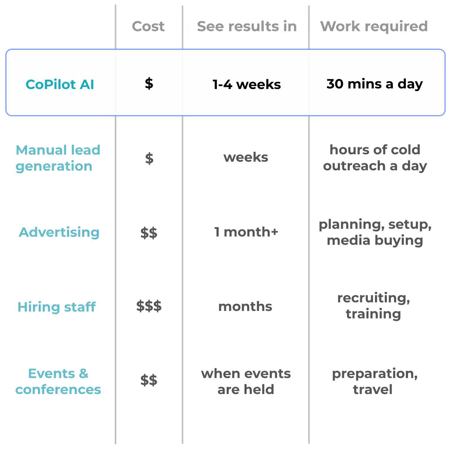Faster & cheaper vs. traditional B2B lead generation methods.