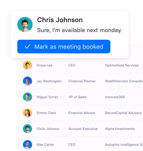 Manage your pipeline effectively by tracking confirmed meetings in one central location.