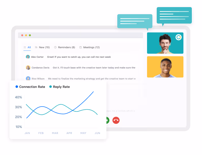 Gain a holistic view of your sales pipeline, including connection and reply rates per rep.
